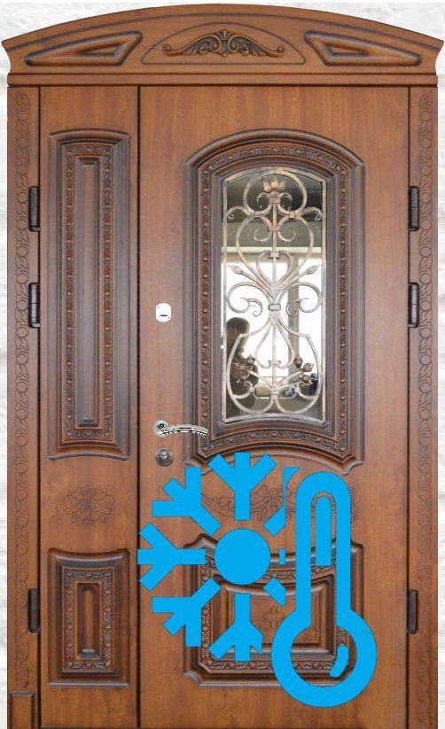 С внешней стороны такую дверь можно отделать как порошково-полимерным покрытием без затей, так и массивом, натуральным шпоном, атмосферостойким МДФ. Терморазрыв применяется при изготовлении парадных дверей, с витражом, ковкой и стеклом. Есть еще одна область применения дверей с терморазрывом. Они, очень хорошо поглощают шум. Поэтому такие двери хорошо зарекомендовали себя в качестве дверей для квартир, находящихся на первом этаже, или рядом с лифтами, то есть в шумных местах.
