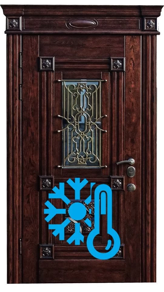 С внешней стороны такую дверь можно отделать как порошково-полимерным покрытием без затей, так и массивом, натуральным шпоном, атмосферостойким МДФ. Терморазрыв применяется при изготовлении парадных дверей, с витражом, ковкой и стеклом. Есть еще одна область применения дверей с терморазрывом. Они, очень хорошо поглощают шум. Поэтому такие двери хорошо зарекомендовали себя в качестве дверей для квартир, находящихся на первом этаже, или рядом с лифтами, то есть в шумных местах.