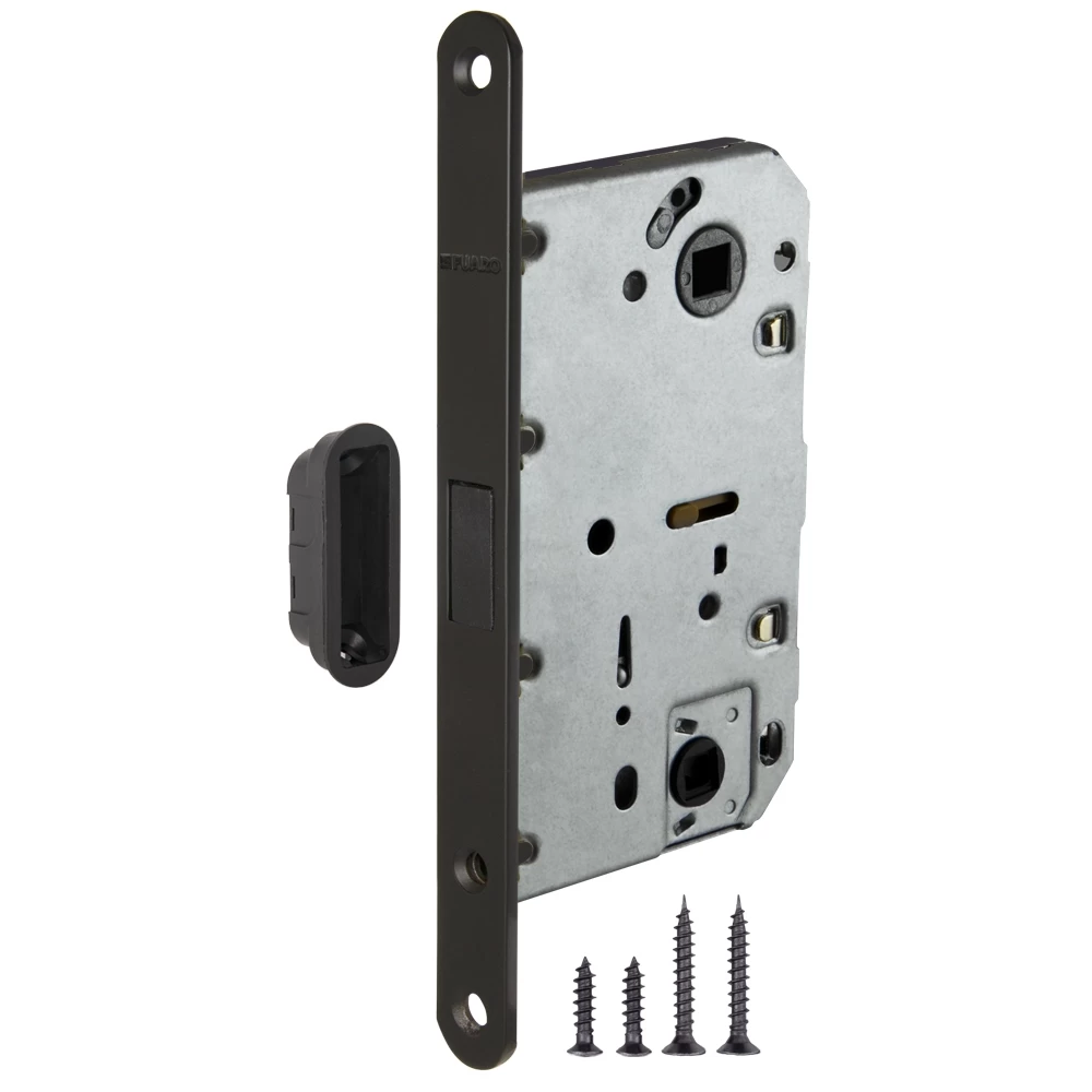 Бесшумная магнитная защелка Fuaro M96WC серии MAGNET изготовлена в соответствии с требованиями ГОСТ 5089-2011. Предназначена для установки в межкомнатные и сантехнические двери. Корпус выполнен из стали с надежным гальваническим покрытием. Магнитный механизм обеспечивает бесшумность работы защелки. Защелка M96WC с усиленным блоком пружин имеет высший 4 класс надежности (250 000 циклов открывания/закрывания). Отверстия под стяжные винты находятся на расстоянии 38 мм. Размер бэксета - 50 мм. Размер межосевого расстояния - 96 мм. Возможна установка дверных ручек на стяжные винты для более прочного крепления. В комплектацию входят: ответная планка и крепежная фурнитура в цвет изделия.