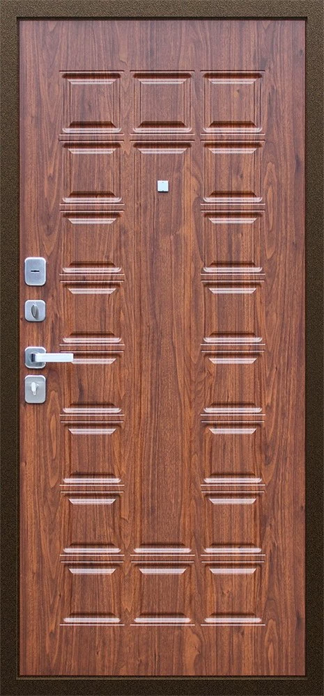 Надежная входная Дверь Спартак Орех темный премиум класса по цене 33 779 руб. Большая толщина стали защитит от проникновения в ваш дом, квартиру или коттедж. Используется очень качественная фурнитура: замки, цилиндры, ручки, защелки. Покрытие и отделка двери изготовлено под внимательным контролем производителя. Дверь имеет долгий срок службы и гарантию.