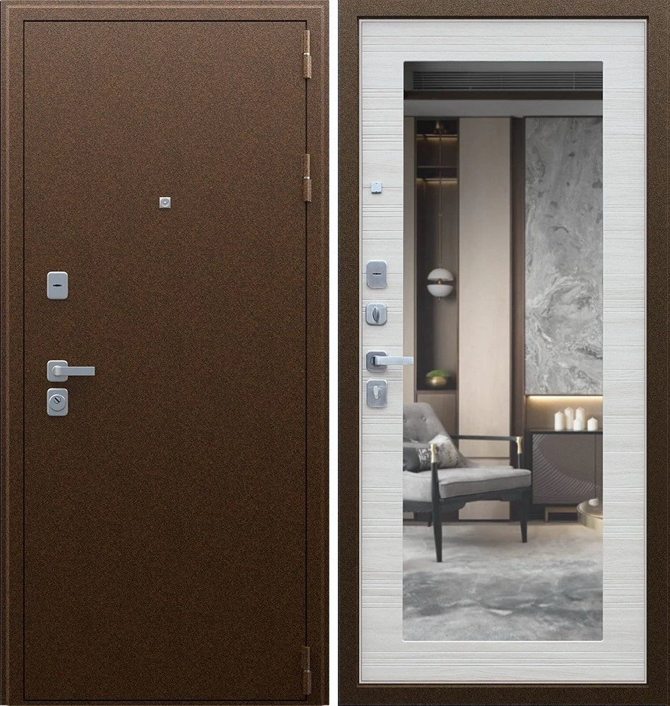 Надежная входная Дверь Спартак с зеркалом Акация Светлая Поперечная премиум класса по цене 36 079 руб. Большая толщина стали защитит от проникновения в ваш дом, квартиру или коттедж. Используется очень качественная фурнитура: замки, цилиндры, ручки, защелки. Покрытие и отделка двери изготовлено под внимательным контролем производителя. Дверь имеет долгий срок службы и гарантию.