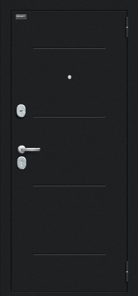 Надежная входная Браво Техно Kale Букле черное/Bianco Veralinga премиум класса по цене 33 829 руб. Большая толщина стали защитит от проникновения в ваш дом, квартиру или коттедж. Используется очень качественная фурнитура: замки, цилиндры, ручки, защелки. Покрытие и отделка двери изготовлено под внимательным контролем производителя. Дверь имеет долгий срок службы и гарантию.