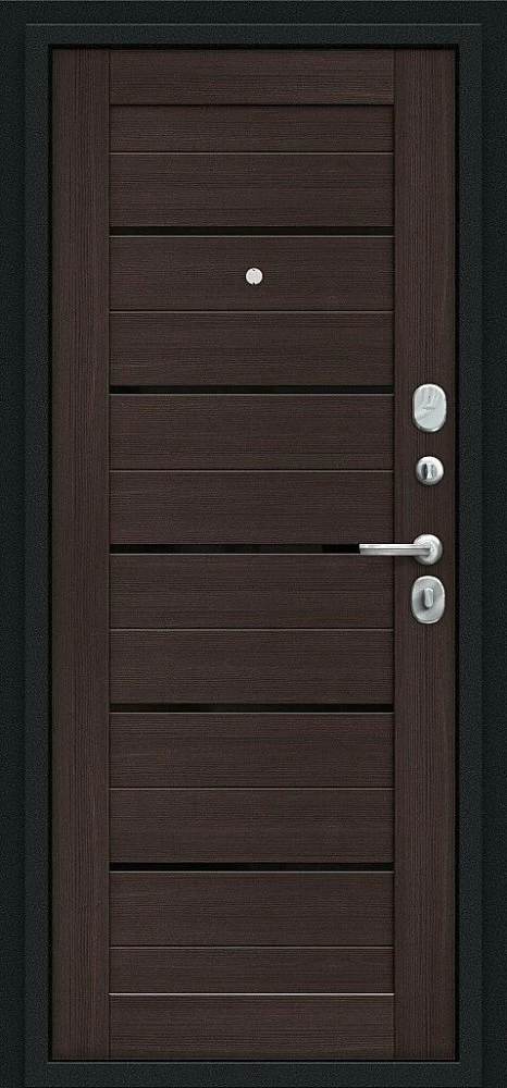 Надежная входная Браво Техно Kale Букле черное/Wenge Veralinga премиум класса по цене 33 829 руб. Большая толщина стали защитит от проникновения в ваш дом, квартиру или коттедж. Используется очень качественная фурнитура: замки, цилиндры, ручки, защелки. Покрытие и отделка двери изготовлено под внимательным контролем производителя. Дверь имеет долгий срок службы и гарантию.