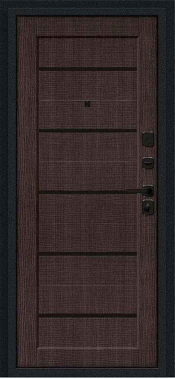 Надежная входная Дверь Браво Борн/SBlack Букле черное/Wenge Melinga премиум класса по цене 33 179 руб. Большая толщина стали защитит от проникновения в ваш дом, квартиру или коттедж. Используется очень качественная фурнитура: замки, цилиндры, ручки, защелки. Покрытие и отделка двери изготовлено под внимательным контролем производителя. Дверь имеет долгий срок службы и гарантию.