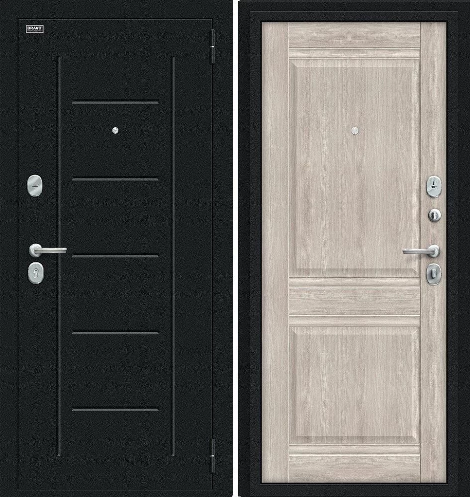 Надежная входная Дверь Браво Некст Kale Букле черное/Cappuccino Veralinga премиум класса по цене 35 249 руб. Большая толщина стали защитит от проникновения в ваш дом, квартиру или коттедж. Используется очень качественная фурнитура: замки, цилиндры, ручки, защелки. Покрытие и отделка двери изготовлено под внимательным контролем производителя. Дверь имеет долгий срок службы и гарантию.