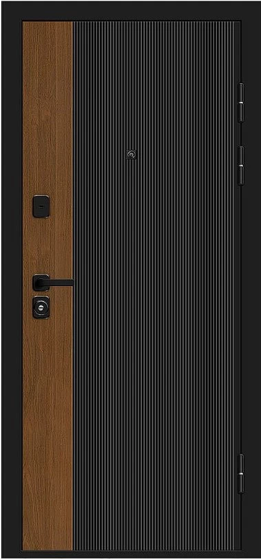 Надежная входная Дверь Браво Optim Z-2 Вертикаль Муар черный-Грецкий Орех/Белый премиум класса по цене 33 679 руб. Большая толщина стали защитит от проникновения в ваш дом, квартиру или коттедж. Используется очень качественная фурнитура: замки, цилиндры, ручки, защелки. Покрытие и отделка двери изготовлено под внимательным контролем производителя. Дверь имеет долгий срок службы и гарантию.