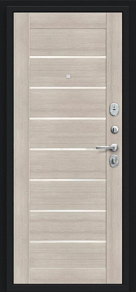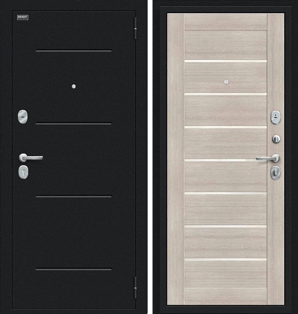 Надежная входная Дверь Браво Техно Букле черное/Cappuccino Veralinga премиум класса по цене 30 929 руб. Большая толщина стали защитит от проникновения в ваш дом, квартиру или коттедж. Используется очень качественная фурнитура: замки, цилиндры, ручки, защелки. Покрытие и отделка двери изготовлено под внимательным контролем производителя. Дверь имеет долгий срок службы и гарантию.